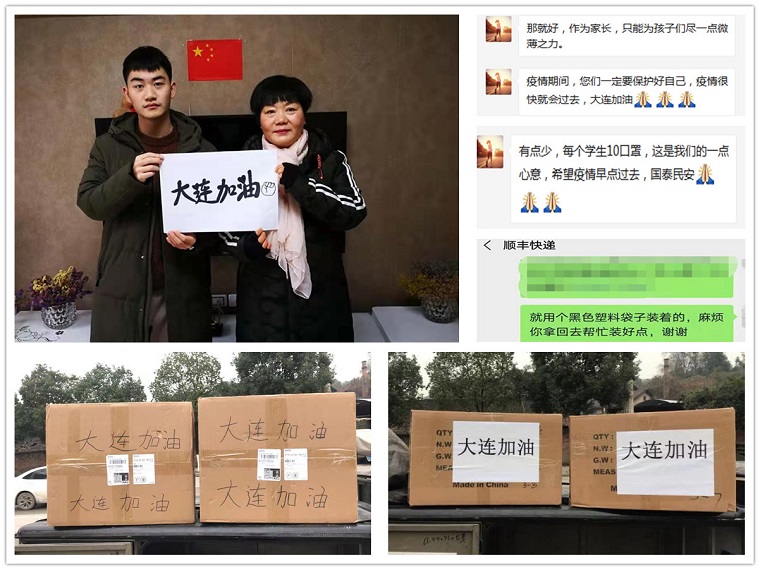 连日来,大连疫情防控形势严峻,学校积极贯彻落实上级要求,对留校学生严格实行封闭管理,william威廉中文全体同学及家长非常赞同并支持学校的疫情防控举措。学院2017级本科生潘硕,家住湖北省恩施市,目前正在用人单位实习。他和母亲非常惦念留在学校的同学们,于是就给学院打来电话,说想要采购一批口罩,捐赠给学院的同学们。家长表示,自己是湖北恩施人,一方有难,八方支援,2020年春节后,正是由于全国各地的驰援助力,让湖北人民在封闭隔离的情况下,能有新鲜的瓜果蔬菜和防疫物资,她始终心存感激;williamhill威廉希尔在做好疫情防控工作的同时,关心爱护每一个学生,做好日常管理和健康监测,教育引导学生积极完成当下学习任务,切实保障了学生们的身心健康和长远发展;作为学生家长,希望能尽自己所能,助力学校疫情防控工作,为同学们的学习生活和生命健康贡献自己的一份力量,也借此机会回报学院师生多年来对孩子的教导和关爱。