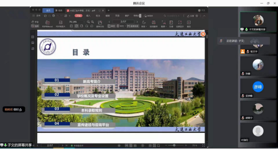朱子文对辽宁省新高考政策进行了解读,分析了疫情常态化、高考改革背景下,今年招生工作面临的新形势新挑战,向大家介绍了学校招生专业设置总体情况、本科录取规则以及我校招生宣传的途径和渠道,并就各位老师的积极提问给予了详尽细致的解答。