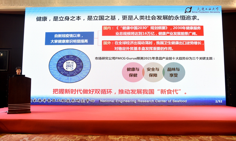 在院士专家报告会上,我校朱蓓薇院士结合自身研究领域,围绕 “把握新时代做好双循环,推动中国食品产业创新与发展”作专题报告。她指出应全面推进食品产业向高端化、智能化、绿色化迈进,全面提升我国农产品加工与食品制造产业的自主创新能力。以“智能、节能、绿色、可持续”为核心,面向经济主战场,延伸产业链,提升价值链,提高食品制造水平,支撑食品产业高质量发展。亟需形成现代食品制造科技体系,保障粮、油、肉等重要农产品供给安全。同时解决一批“卡脖子”问题,在产业优势领域精耕细作,打破国外先进技术与核心产品垄断,增强产业竞争力和抗风险能力。最后展望我们应该通过食品产业科技创新,建设具有中国特色的现代食品产业体系,助力食品产业的新担当,新作为,形成国内国际双循环相互促进的新发展格局,为建设健康中国做出积极贡献。