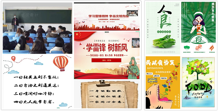 传承雷锋服务精神”文创作品设计大赛,号召学生夯实学科专业知识,传递食品安全理念,领悟刻苦钻研的“钉子精神”和服务意识。为积极培育和践行社会主义核心价值观,营造积极向上、健康文明的新时代文明新风尚,扩大良好家风文化的影响力,学院开展“修身齐家,为学治世”家训征集活动,学生反响热烈,积极投稿参与。