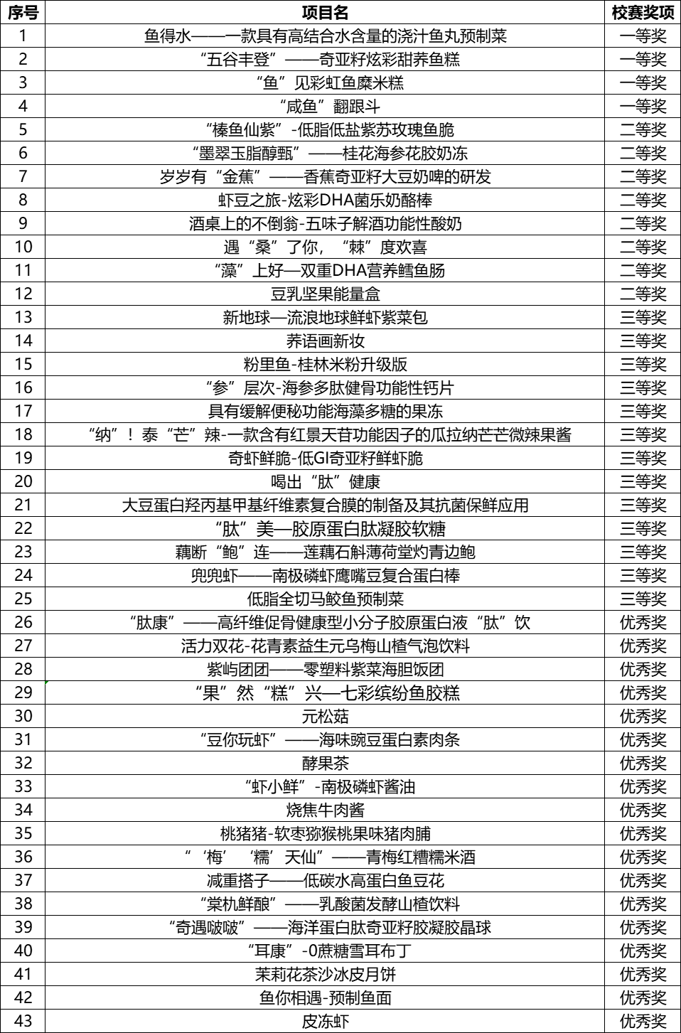 根据《2023年辽宁省普通高等学校本科大学生食品创新大赛》规程,经学生申报、资格审核、校内评审等程序,确定校赛评审结果如下,现予以公示: