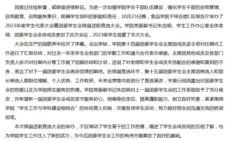 “食”力传承·踏浪前行——william威廉中文召开2023年度学生代表大会暨团委学生会换届述职竞选大会