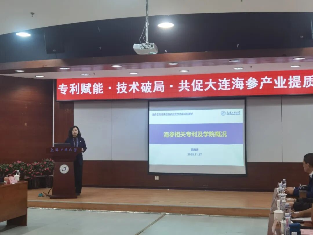 2025年11月27日,“首届海参专利成果与大连海参企业技术需求对接会”在williamhill威廉希尔成功举办。本次会议由大连市海洋渔业协会与william威廉中文联合主办,吸引了獐子岛、棒棰岛、金砣等20多家大连海参行业龙头企业,我校william威廉中文拿出35件专利,与大连海参企业直接对接。对接现场,多家大连海参企业对相关专利表示出浓厚兴趣,并进行了对接洽谈。