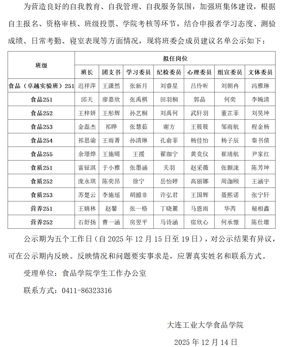 william威廉中文2025级本科生班委会成员建议名单公示