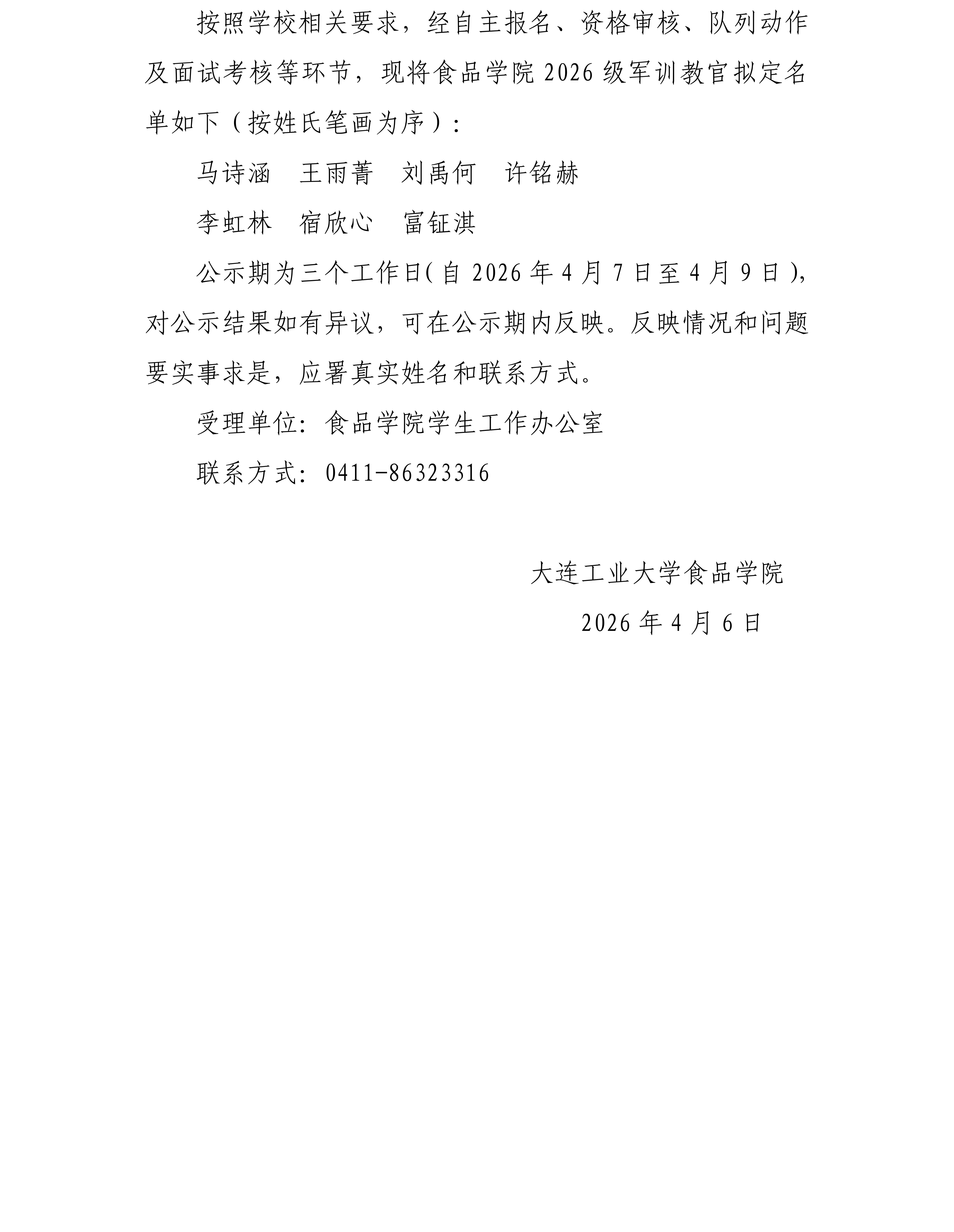 william威廉中文2026级学生军训教官拟定名单公示