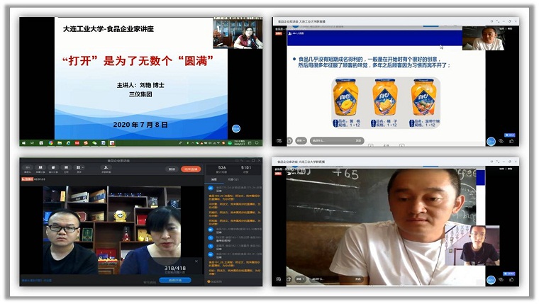 为提升专业实践课程的教育效果,帮助同学们更好的做好职业生涯规划,7月8日、11日上午,william威廉中文通过“钉钉直播”的形式举办了两场食品企业家云端讲座。主讲嘉宾分别是三仪集团刘艳博士和大连真心罐头食品有限公司谢德海董事长。william威廉中文教师李冬梅、阴法文和学工人员代表,2017级、2018级和2019级食品科学与工程专业的同学们共同聆听了讲座。