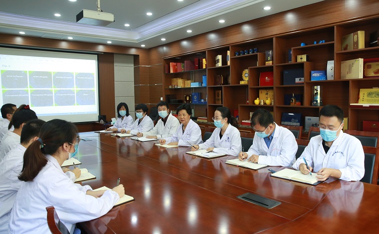 朱蓓薇院士正在与团队成员讨论各种海洋多糖抗新冠病毒的效果