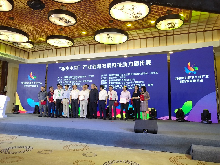 在习近平总书记“巩固扶贫协作成果,共谱产业振兴”的重要精神指引下,为强化科技对柞水木耳产业发展的支撑引领作用,带动有关创新资源集聚,依靠科技创新助力柞水木耳产业做强、做优,科技部中国农村技术开发中心联合陕西省科技厅、商洛市科技局及柞水县人民政府“四级联动”,共同邀请中国工程院李玉院士领衔的20位专家学者,成立了“柞水木耳”产业创新发展科技助力团,我校李冬梅高级工程师作为助力团成员之一在会上接受聘书。科技助力团将为打造柞水木耳产业“升级版”提供全方位、多层次、常态化智力支撑,指导解决木耳生产、加工、产品质量、废弃菌棒无害化处理等有关实际问题,把柞水打造成全国木耳产业创新发展区域高地。