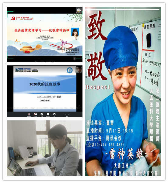 5月11日下午,william威廉中文与生物工程学院、继续教育学院党总支依托“腾讯会议”APP线上平台联合举办了5月党日活动暨“抗击疫情党课学习——致敬雷神英雄”专题活动,特邀曾参与驰援武汉雷神山医院的大连医科大学附属第二医院主任医师董营担任主讲人。活动由生物工程学院党总支书记张晓丹主持,三个学院全体师生党员共计300人参加了本次活动。