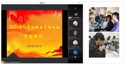 5月27日,入党积极分子培训班开班典礼在线上举行。校组织部副部长周芸,食品、轻化、机械三个学院的党总支书记、副书记、分管学生党建工作的辅导员老师及全体学员参加了本次活动。轻化学院党总支书记迟青山宣读了《2021年入党积极分子培训方案》,介绍了培训的总体安排。周芸作动员讲话,她对本期培训班的顺利开班表示衷心祝贺,希望同学们立足更高起点,做到理论学习深入,文化学习刻苦,日常管理严格,为早日成为忠于党忠于人民的先锋战士而努力奋斗。