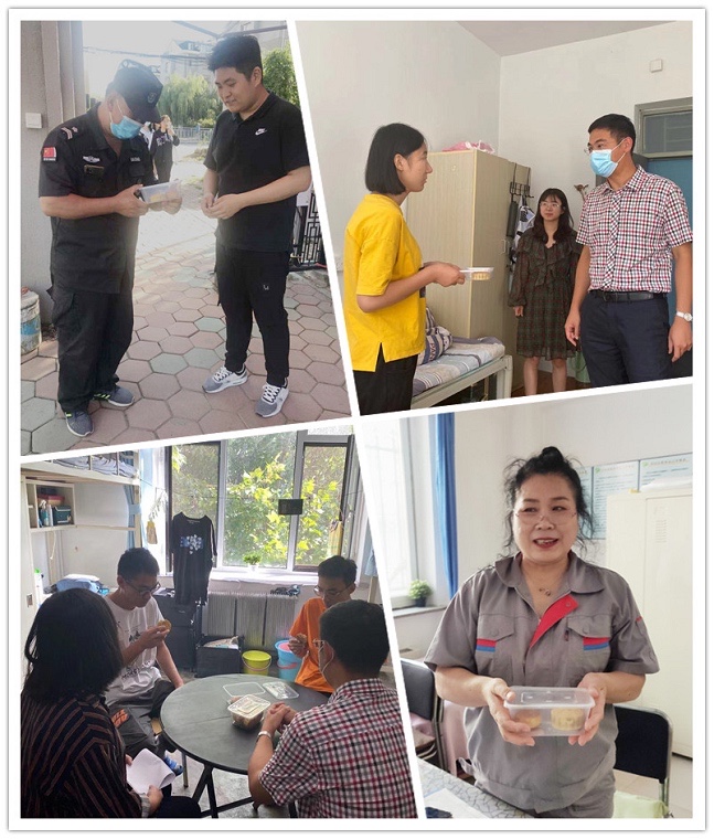 经过烘焙,金黄饱满、口感丰厚的月饼新鲜出炉,同学们品尝着亲手制作的月饼,幸福感满满。活动结束后,学院老师将亲手制作的月饼送到学生宿舍,并送上节日祝福。同学们和身边的宿管阿姨、保安叔叔一起快乐分享节日月饼,感谢他们的关心照顾和辛勤付出。