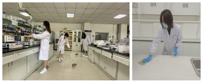 学生党员自发在实验室、自习室开展卫生大清扫工作,营造干净、整洁、清新的科研学习环境,表达了爱校爱院之情。发扬不怕脏、不怕累的工作精神,相互配合、团结协作,践行了党员的使命担当,展现出食院学子的良好精神风貌。