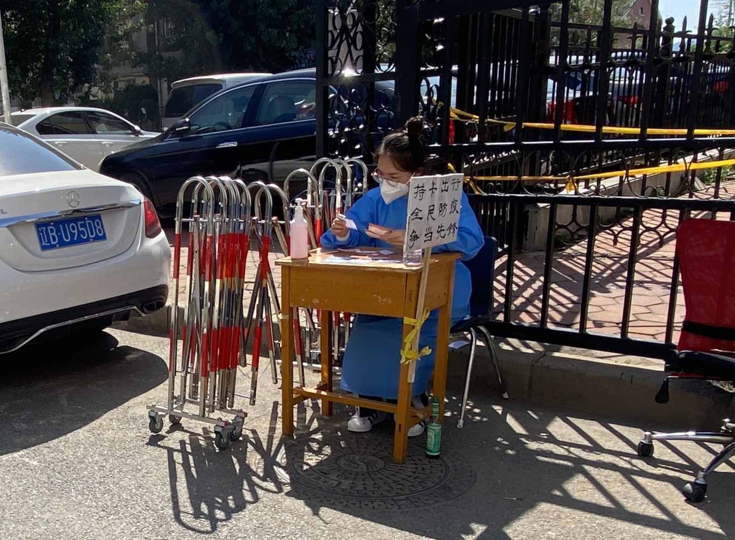 2020级食品科学与工程博士研究生杨美莲在大连市甘井子区岭西社区参加志愿服务活动,主要任务是9月5日起每日参加出入卡点的通行检查及政府蔬菜保供点的秩序维护,尽自己力量维护居民日常生活秩序,为大连市早日恢复生产生活贡献力量。