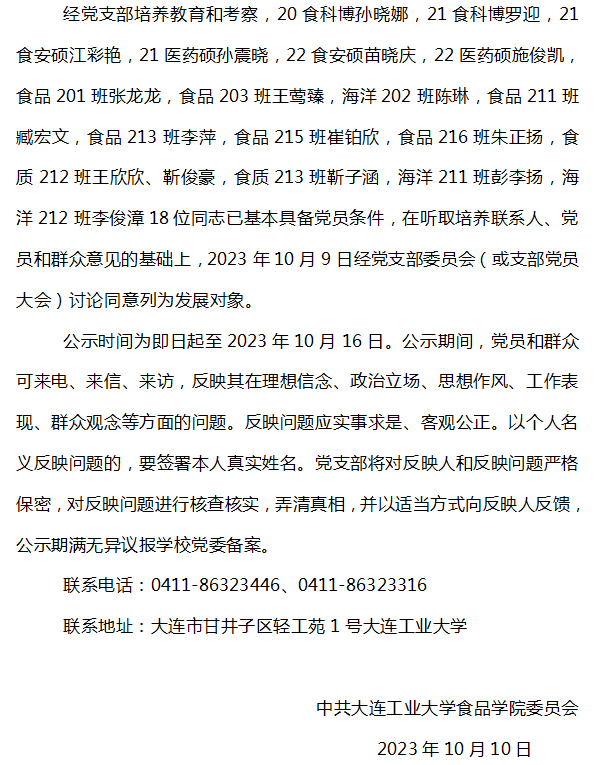 关于确定孙晓娜等18位同志为党员发展对象的公示
