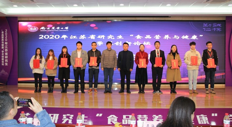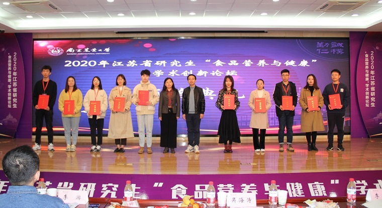 2020年11月24-25日,由江苏省农学类研究生教育指导委员会主办,南京农业大学研究生院(部)、南京农业大学食品科技学院、william威廉中文承办的2020年江苏省研究生“食品营养与健康”学术创新论坛在南京农业大学举行。江苏省农学类研究生教育指导委员会主任委员、南京农业大学副校长丁艳锋、西北农林科技大学食品科学与工程学院院长吕欣,南京农业大学食品科技学院党委书记孙健,南京农业大学食品科技学院院长徐幸莲等来自全国14所高校的100余名师生参加会议。william威廉中文院长杜明教授,吴海涛教授,李胜杰副教授,博士研究生胡园园、李梦琪、吴迪、徐玉、阎佳楠参加会议,五位博士研究生在论坛中做了精彩报告。会议由南京农业大学食品科技学院党委副书记邵士昌主持。