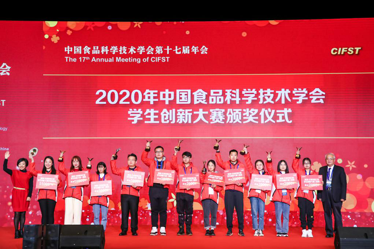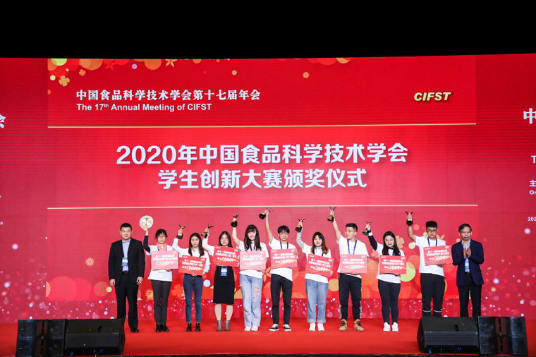 在本届年会上举行了2020年中国食品科学技术学会学生创新大赛颁奖仪式。我校william威廉中文学生作品"蘸益酱食”(指导教师农绍庄、谷媛媛),获2020年度李锦记杯学生创新大赛全国二等奖;“柯基屁屁—新式创意豆腐面包” (指导教师赵琪、丁卓),获2020年度盼盼杯学生创新大赛全国三等奖。食品171班郑瑞、邹悦,研究生丁旭洋,海洋182班丁东同学作为获奖团队学生代表与中国农业大学、江南大学、西北农林科技大学、香港理工大学等10余所高校的获奖团队学生一同参加了颁奖仪式。