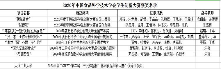 附件:2020年中国食品科学技术学会学生创新大赛获奖名录