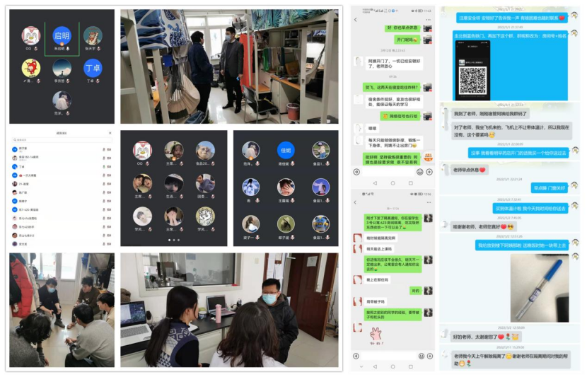 学生状态信息的搜集和反馈、行程轨迹的排查和核对、身心状况的关注与抚慰、全员核酸的组织与确认、隔离学生的健康与保障、线上网课的出勤和效果……这就是学工人员的工作日常。他们没有周末,没有下班,24小时保持通讯通畅,随时准备应对可能出现的各类突发状况。他们通过召开线上年级会、学生骨干会、寝室长会议等传达目前疫情防控形势,解读学校疫情防控政策,告诫同学们严格遵守各项规定,摒弃侥幸心理;也通过走寝室、进实验室,了解学生的思想动态,解决学生的实际困难,鼓励学生积极应对。