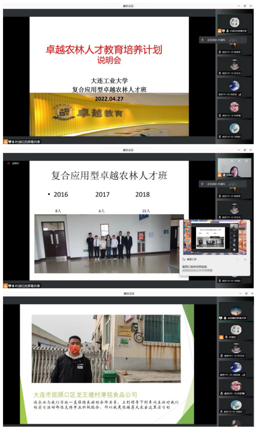 为加强食品质量与安全专业学生对卓越农林人才培养计划(以下简称“卓越计划”)的了解,更加明确自己的职业生涯规划,4月27日下午,食品质量与安全专业“卓越计划”宣讲动员会依托腾讯会议平台线上举办。宣讲会由“卓越计划”负责人叶淑红教授主讲。2018级卓越班学生代表宫世鹏、2019级食品质量与安全专业本科生参加了本次会议。