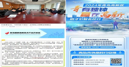 3月13日,朱启明一行来到青岛高新技术产业开发区管理委员会,高新区党群工作部副部长万宁介绍了高新区产业集群、食品类企业规模、高新区人才政策以及就业需求情况,希望吸引更多的优秀毕业生到区就业,为高新区高质量发展提供有力支撑。朱启明介绍了学校的发展历史、办学特色以及学院在专业设置、人才培养、科学研究、平台建设等方面的优势,希望通过强化政校企合作,拓宽就业渠道,促进毕业生就业。会后,高新区党群工作部在“青岛高新”公众号对学院春季招聘活动进行了宣传,目前已有部分青岛企业报名参会。
